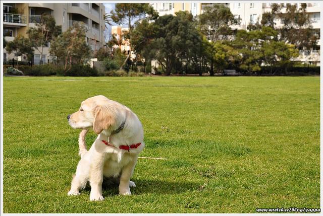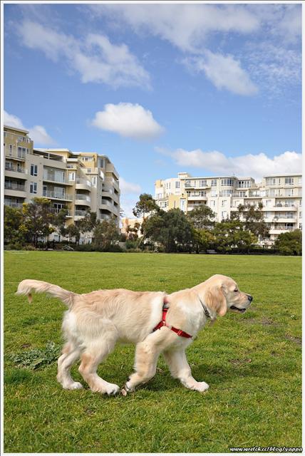 在上班前,我先帶布丁去到公司附近的公園大小便一下,