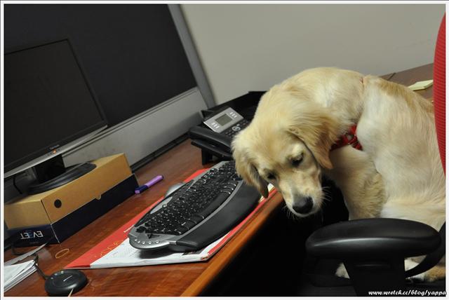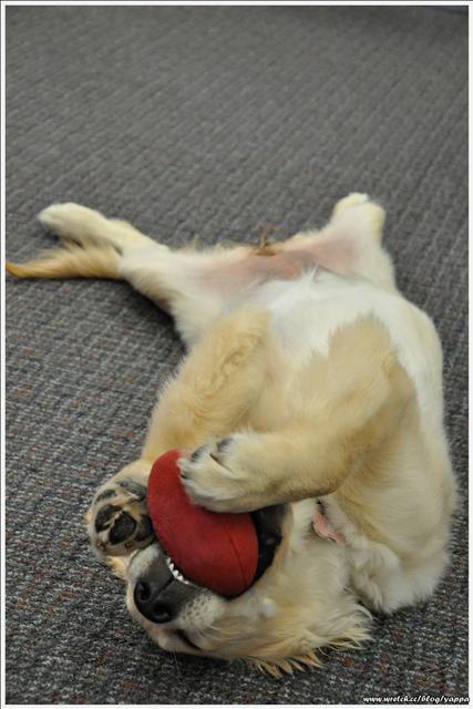 布丁待在辦公室裡也算是乖,雖然一醒來就四處巡視,偶爾咬垃