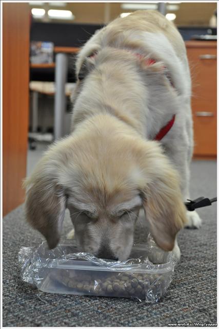 (感謝布丁的哥哥的麻麻教的用保鮮紙放狗糧方法,這樣狗碗不會油膩,又可以當水碗。)