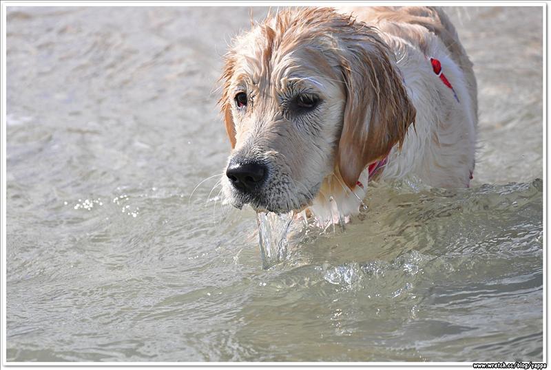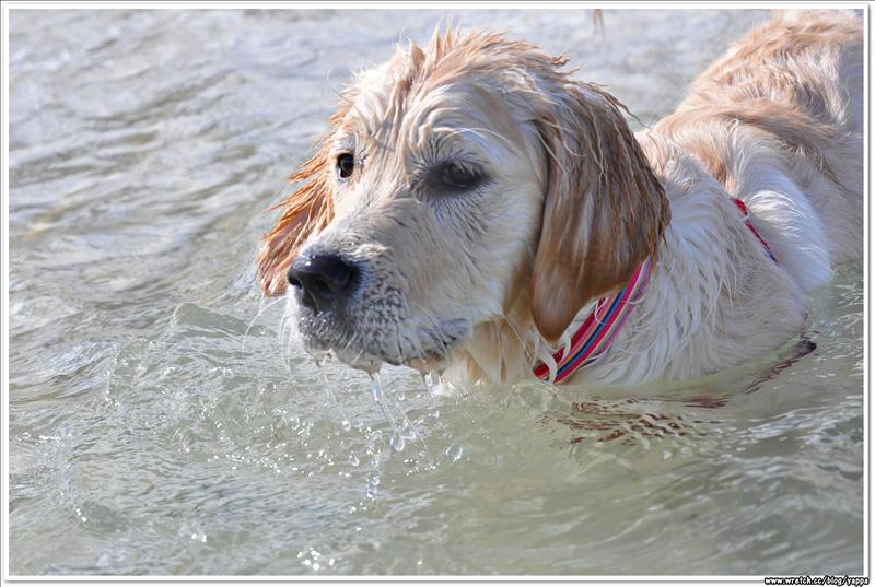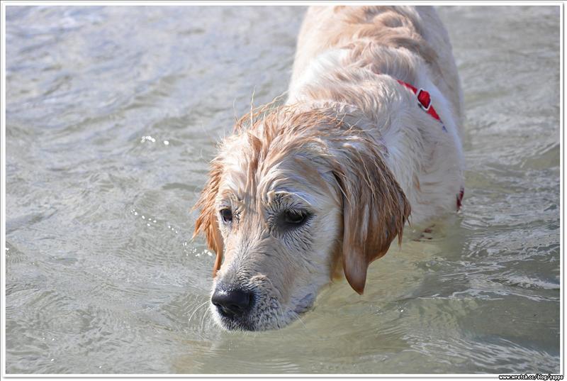 因為剛剛誘引布丁到太深水的地方,讓布丁有點害