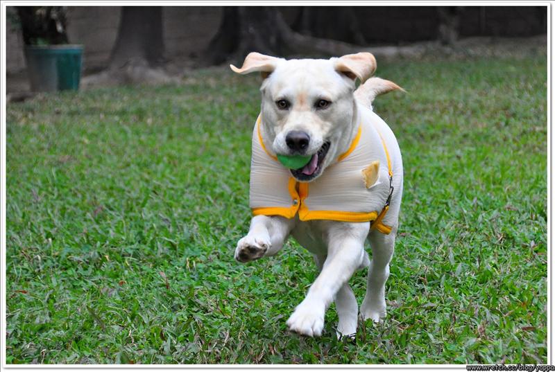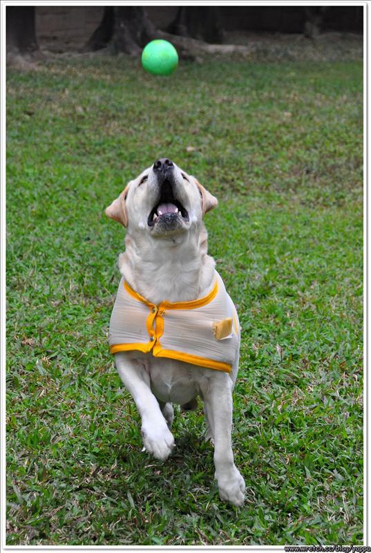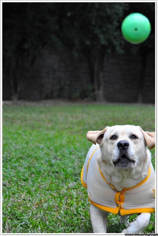 回來後的每一天早上,我都會花一點時間和高高玩撿球遊戲,