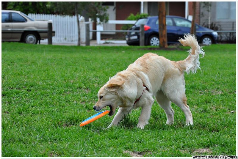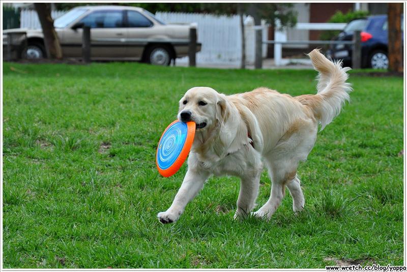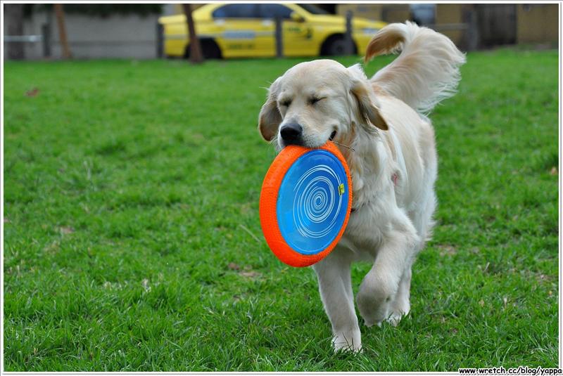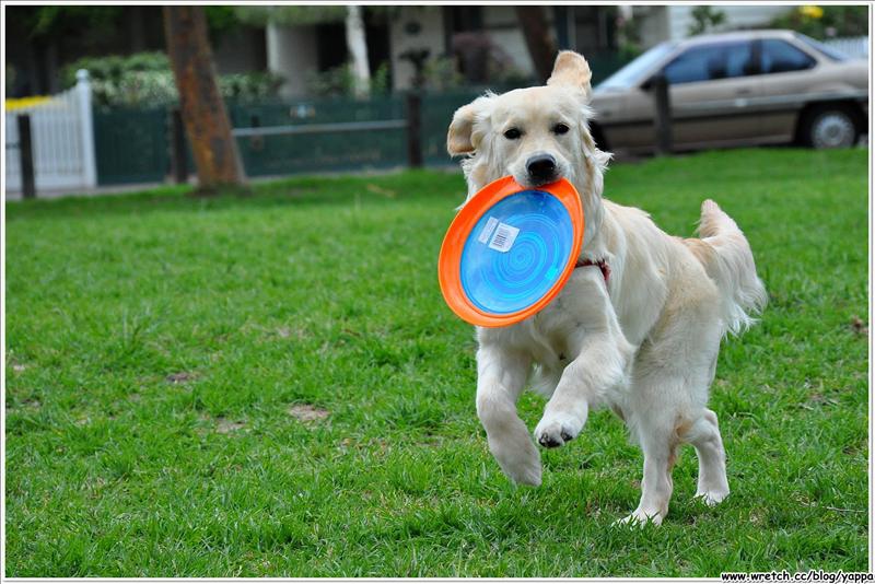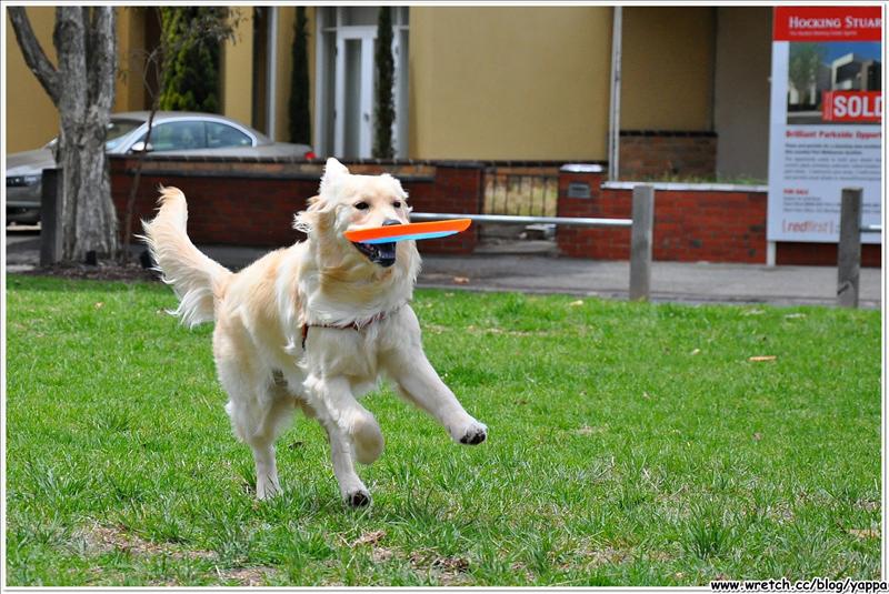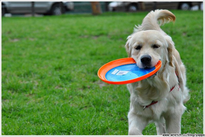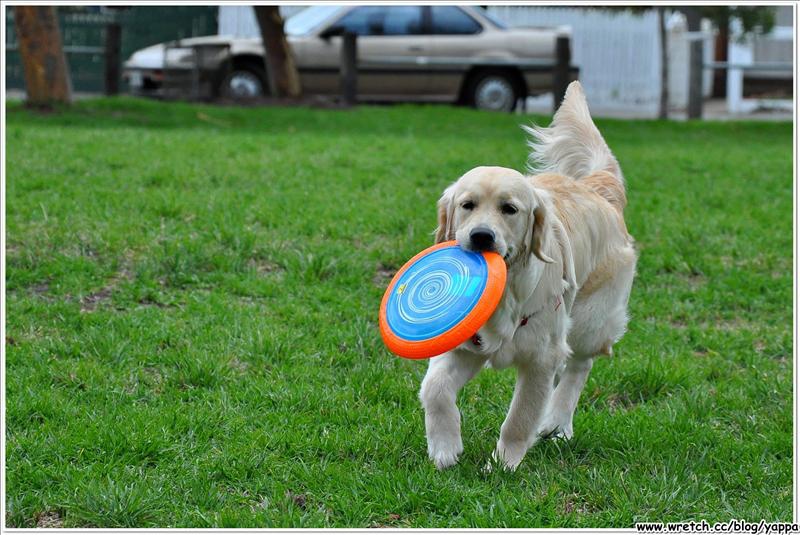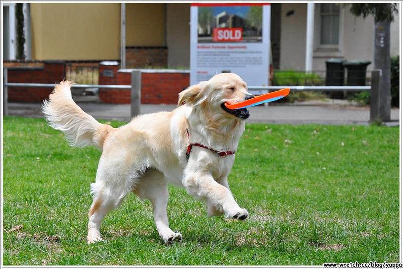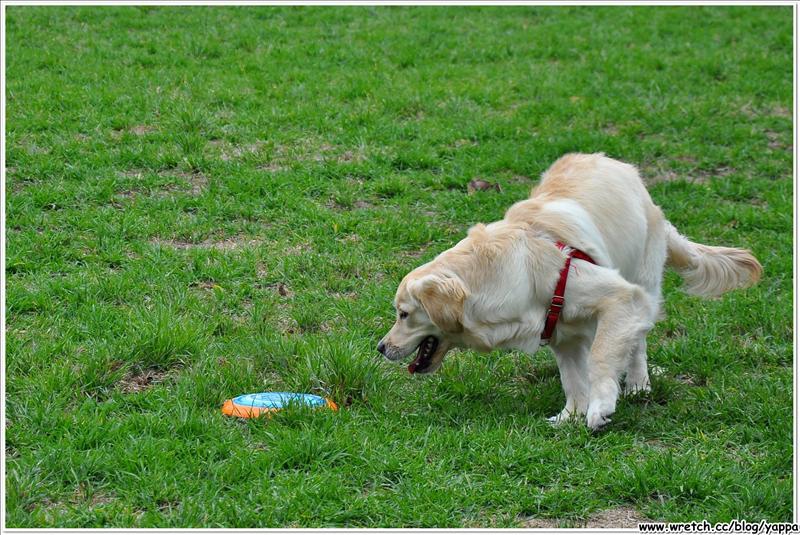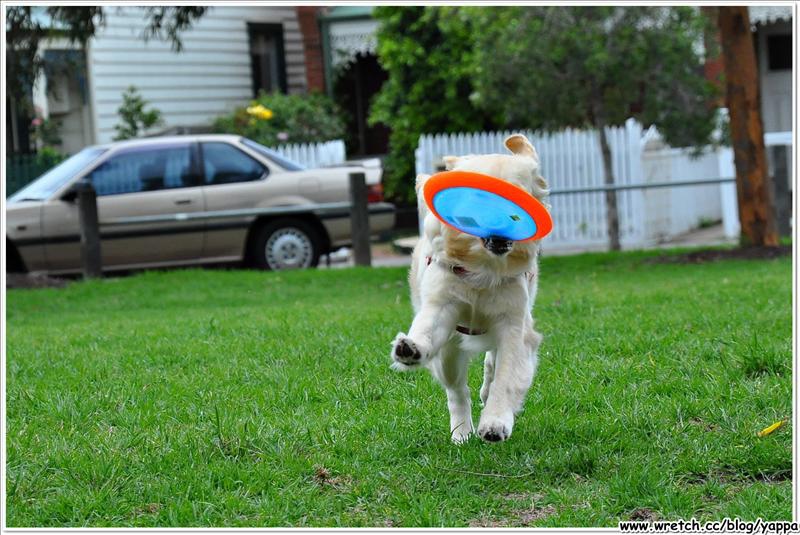 我拿著相機,本想捕捉布丁跳起撲咬飛碟的身影,但是布丁就