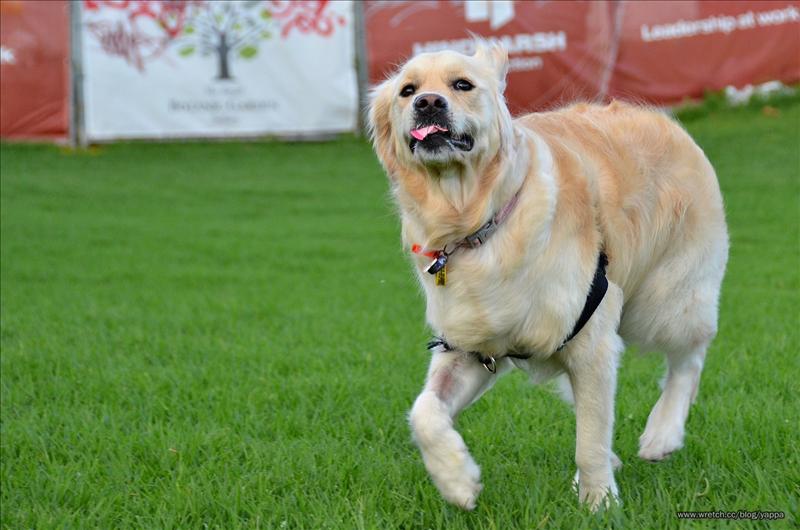傍晚的時分,帶了布丁去附近有很多有公園和草坪的