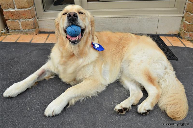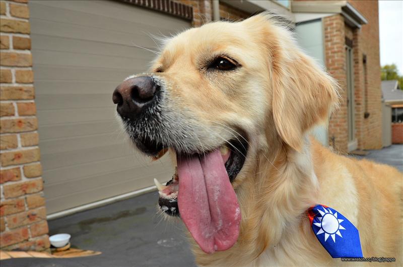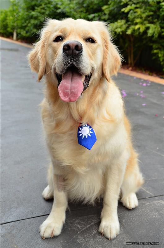朋友給布丁載上了他們為自家狗狗準備的Million Paws Walk Day臺灣領帶: