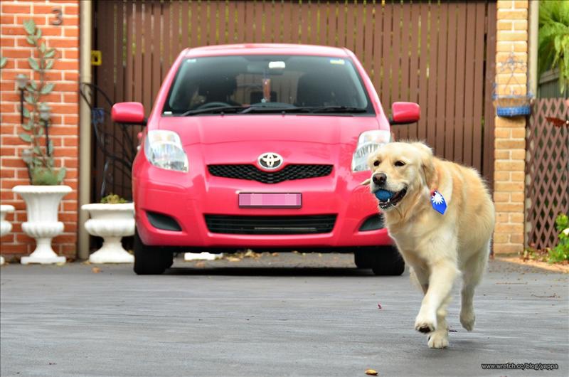 布丁在車子裡等了約三十分鐘,在等待的時間布丁都會躺下來睡覺,